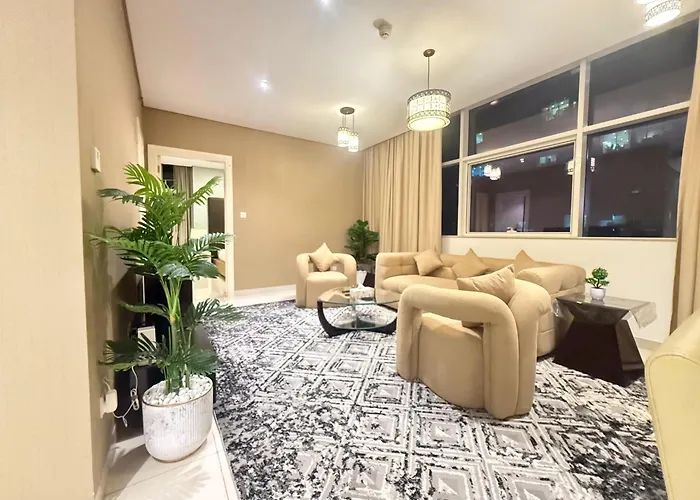 Para aproveitar as suas ferias em Dubai, fique no o apartamento Wecation- Chic 2Br Damac Maison Cour Jardin Business Bay Dubai de 120 m², que está a uma distância de 2.3 km de Dubai Mall e a caminhada de 17 minutos de Fontes de Dubai. Os hóspedes podem beneficiar de piscina interior, enquanto ficam no bairro Business Bay em Dubai.